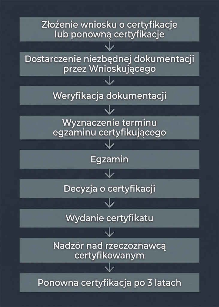 Proces certyfikacji przeprowadzany jest według ściśle określonych procedur zapewniających bezstronne i rzetelne przeprowadzanie procesu certyfikacji rzeczoznawców.